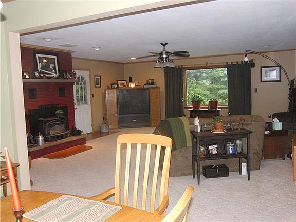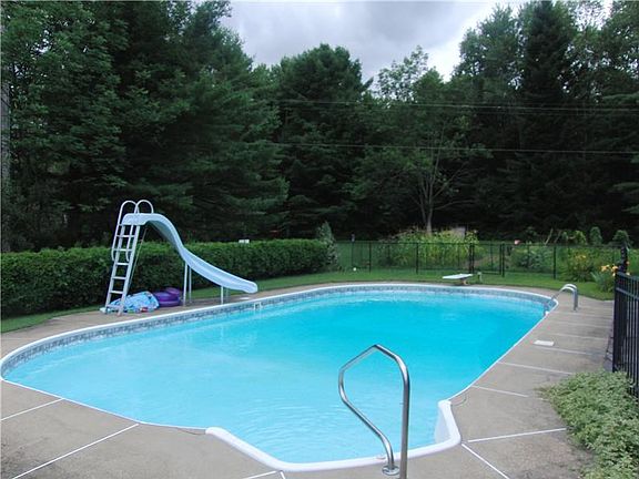 Private House setting with inground pool, with slide, basketball court, wood boiler to heat and appox 700 sq ft. large barn/workshop with electric hooked up with additional storage shed behind, all on 4.6 acres w/ woods behind, large deck off very spacious FR w/ fireplace. 28 x 16 deck to lower patio to pool. 3 nice BR's with Crown Molding and 2 full baths, laminate wood floors along w/ hardwood floors. Recently finished basement with two additonal rooms with closets off main room with separate laundry room