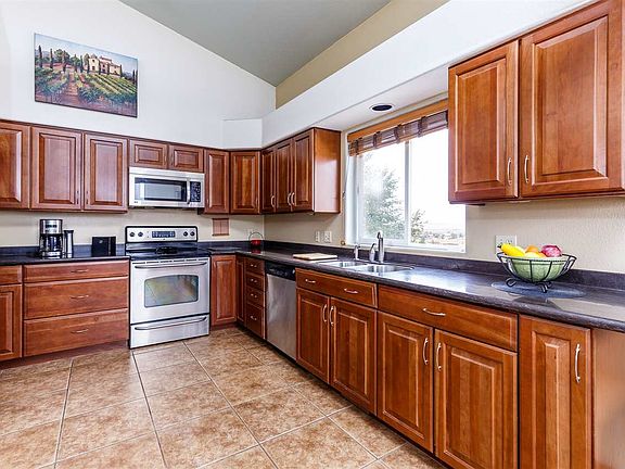 This is a beautiful home with the perfect amount of privacy. There is a cement rock wall around the front, views of the golf course and mountains in the back. The kitchen features granite counter tops, stainless appliances, and dark wood cabinets. Enjoy the peace and quiet sitting outside on the large trex deck. FOUR WHEELER WITH GPS AND SNOW PLOW TO STAY WITH ACCEPTABLE OFFER!!!!!