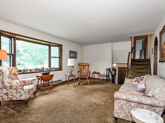 Priced to sell, this 3 bedroom 2.5 bath split level is in move in condition. Living room with fireplace. First floor family room and potential 4th bedroom. Carpeting throughout. 12 x 15 enclosed porch overlooking private 3.64 acres. New roof installed. Master bedroom with its own bathroom. Spacious kitchen. Convenient location. Sellers cannot close before 9/30/2019.