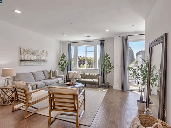 Stunning, solar equipped tri-level condo with 1,718 sq.ft. of living space, two generously sized bedrooms and two and a half bathrooms. First floor den offers a perfect work from home solution. The main living area is an open concept, grand-room style and includes an expansive kitchen and walk-in pantry. Private owner’s suite with dual vanities and a walk-in closet. This home is conveniently located near shopping, dining, and transportation. Close proximity to BART, I-880, Hwy 238 and 92.
