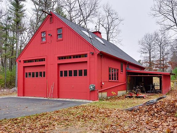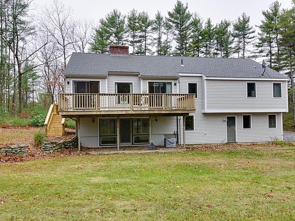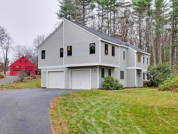 Spacious contemporary with private 5+ acres can be yours! This home has great features: 2 car garage, master bath, open floor plan and extra large bedrooms. These features are hard to find at this price! It also has wonderful decks to enjoy the seasons. Vaulted ceilings in the family room and centered brick fireplace bring abundant natural light and rustic charm. Family room is large, 25x13, and has two bump outs adding charm and light. In addition, there is a large barn/workshop, originally built for horses but now a carpenters workshop. Much of the exterior has been replaced, the roof is young (2011), and many windows are new or recently replaced. Hardwood floors in all the bedrooms. The barn is in excellent condition (roof 2007) and has plenty of power. Significant portions of the lot have been cleared and fenced. Close to conservation land for equestrians. Minuteman airfield close by.