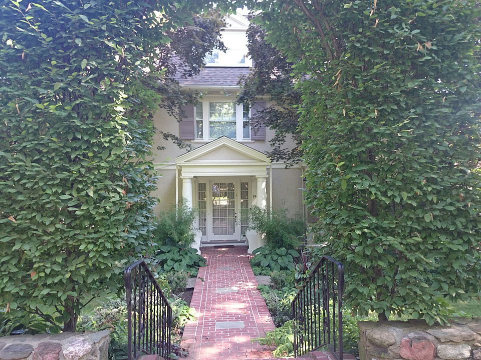 Gracious stucco residence located on beautiful Fisher Hill with fine architectural details and stunning fixtures. This meticulously maintained home features an elegant foyer with an exquisite staircase, wainscoating, and the original tapestry wall coverings. The front-to-back living room has a fireplace, a window seat and built-in bookcases and opens to a lovely screened porch. Wainscoating, a beamed ceiling, and two floor-to-ceiling china cabinets enhance the generously sized dining room. The large eat-in kitchen features wood cabinetry, Corian countertops, and an original pantry. The second floor has a three room master suite with an artist studio, office and bathroom, three other bedrooms, a bathroom , and laundry facilities. The third floor has a bedroom, office, bathroom, and storage. Amenities include a multi-zone heating system, central air-conditioning, a partially finished basement, professionally landscaped grounds, and a two car garage.