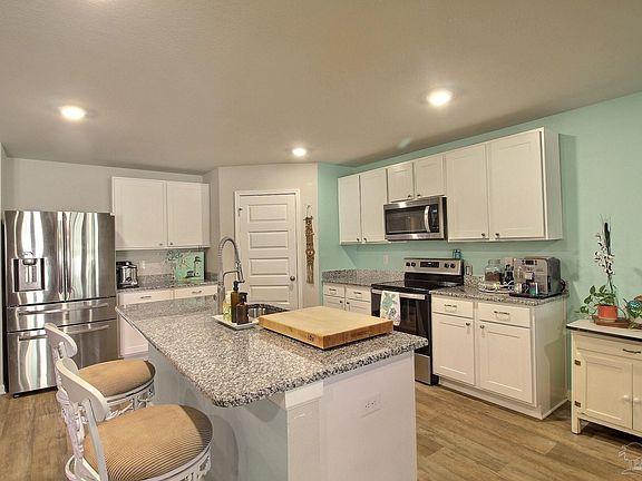 His four-bedroom coastal home is Gold Fortified with Smart Home Technology and is just under 3 years old. With over $40,000 in upgrades, it’s ready to go. No waiting for a home to be built. It’s located less than a mile from Gulf Shores, Alabama, so you can choose dining, shopping, and events in Foley or along the Gulf Coast. The highlight of this home includes a FOUR-SEASON SUN ROOM with heating and cooling. It can be a sanctuary for your plants or a quiet place to do hobbies, be alone, or watch TV. The newly added firepit with privacy fence adds an outside feature to enjoy. Since the house is across from two ponds, you’ll see the trees and skyline in the distance. With only two neighbors, there’ll be additional space for guest parking. Take a peek inside and see luxury vinyl plank flooring with blinds and ceiling fans in every living and bedroom space. The spacious primary retreat has two walk-in closets and is set apart from the other bedrooms. The kitchen has granite countertops, stainless-steel appliances, and plenty of room for dining room furniture. Outside, you’ll find a fully fenced yard with front and back rain gutters. and a drip irrigation system to the backyard bushes, blueberries, and two peach trees. This house is ideal with two built-in dog doors. Make this turn-key property your forever home. Aloha! Buyer to verify all information during due diligence.