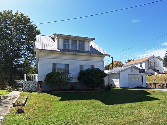 Located in Bluewell with updated dine-in kitchen and remodeled baths. Main floor bedroom and bath with walk-in shower. Includes main floor laundry and large basement for storage with half bath and outside entrance. New roof 2009 and heat pump installed 2017 supplemented by wood stove in basement. Half acre mostly level yard with lots of space to garden and play. Enjoy sitting on private back porch. Attached one car garage (15'x25') and storage building (11'6x15'). May use the well for gardening.