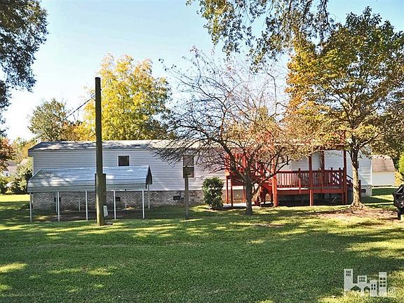 Excellent condition on this 3 bedroom 2 bath located on almost 1 acre. This home is located in a very quiet area of town. There are 3 beautiful mature Live Oaks on the property, a Peach/Plum Tree and 3 spacious sheds/storage buildings. There is also a carport and a double deck. The roof and HVAC compressor are only 2 years old. Home warranty and all appliances included for buyer.