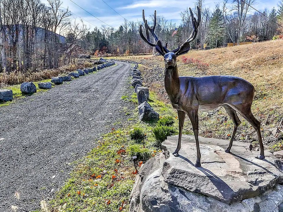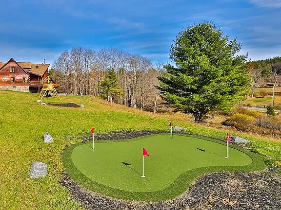 BONUS! This amazing custom log home comes FULLY Furnished with EVERYTHING purchased in 2021 including silverware, cooking equipment, utensils, bedding, linens and ALL the amazing games, pool table, ping pong, etc! EXTRA BONUS!! This amazing home has been a successful Airbnb and the new buyer can transfer this business over if they so choose. "Antler Ridge" is a SUPERHOST and comes with a unique ability to be rented per day that you're not using it, OR it can be taken off the short term rental platforms completely for your own personal enjoyment! Welcome to Antler Ridge Estates! A beautiful, fully furnished, modern but rustic log cabin nestled in the Catskill Mountains of Windham, New York, only 6 minutes from Windham Mountain Ski Resort and 17 minutes to Hunter Mountain. True to its name, this is home to many white-tail deer and it is very common to find them grazing early morning and late in the afternoon in the field. You’ll be greeted the moment you arrive by our stoic Buck statues found at the entrance of the driveway. Continue onward to find Antler Ridge’s breathtaking Estate, privately situated on 6-plus acres with spectacular panoramic mountain views from just about every room and corner of the property. When you enter the home you will walk into the large family room that boasts a high log-beamed vaulted ceiling and large windows to take advantage of the spectacular mountain views. The room has a large sectional sofa, two armchairs, flat-screen TV, and a floor-to-ceiling stone wood-burning fireplace. As you move ahead you will enter the kitchen which is equipped with stainless steel appliances, granite countertops, and a large center island that seats 6. You will also find all plates, glasses, and utensils waiting to be set at the dining table which also seats 6. Continue through to the master bedroom (Bedroom #1) equipped with a flat-screen TV and ensuite which has double sinks, jetted tub, and a stall shower. You can also access the deck from the master bedroom! Walk upstairs to a large but cozy sitting area that overlooks the family room where you can play chess or just relax and read a book, or even watch TV in the family room below. There are 3 bedrooms individually decorated in a woodland/cabin theme. Bedroom #2 has 1 queen bed, Bedroom #3 has 2 full beds, and bedroom #4 has two 2 full beds. A full bathroom complete with a tub/shower combo is centrally located in the main hall. This home sleeps 14 comfortably. Come back down the stairs and head down to the lower level. Yes, we saved the best for last!… a fully furnished walkout game room that has all the ingredients for a good time: a flat-screen TV, foosball, air hockey, ping pong, pool table, poker table, arcade games, a dartboard, bar, and an electric fireplace. This space also leads out to the lower patio with a hot tub, and seasonal seating. And for the kids or gamers who don’t want to leave our fantastic Game Room, you’ll also find bedroom #5 with two twin beds! Lastly, step outside to relax on the deck, soak in the hot tub, grill on the patio, or toast marshmallows around the fire pit! Oh and don’t forget our putting green for the adults to practice and a swing set for the kiddos!! So, come and relax, unwind and enjoy the luxury, quiet, and calmness that the Catskills has to offer. Or, if relaxing isn’t your thing and adventure is, we are located just 4 miles from Windham Mountain which has many trails to ski and snowboard, and snow tubing. There is a sky ride, bike park, golfing, fishing, kayaking, canoeing, and many walking and hiking trails. Although shops and restaurants are only a 10-minute drive away, the area feels peaceful, private, and secluded.