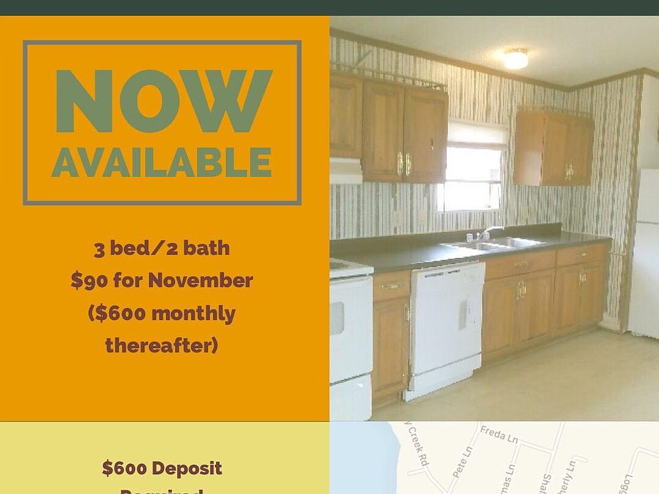 $90 November move in special. $600 Deposit and background check required. Mobile home community located near great shopping and restaurants.