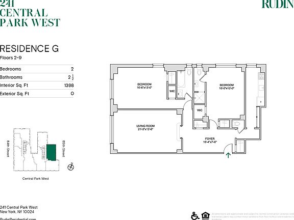 Welcome home to 241 CENTRAL PARK WEST. Spacious, 2 Bedroom, 2 Bathroom home, apartment 9G features: - Over 1200 sqft of living space - Two king sized bedrooms with abundant closet space - Upgraded kitchen with high end appliances and finishes - Upgraded bathrooms with high end finishes - Beautiful oversized windows - Walnut oak hard wood flooring - Oversized gallery/entry Pictures are from a different apartment with similar finishes. The Upper West Side neighborhood is rich in cultural activity that include The Museum of Natural History, The Children's Museum of Manhattan, Lincoln Square, The Metropolitan Opera, The New York City Ballet and the New York Philharmonic. There is no shortage of dining in the neighborhood with a wide range of eateries, groceries and delis ranging from casual to fine dining options. Some of the local favorites include Zabars, Trader Joe's, Playa Betty and Osteria Cotta. Of course, there is easy access to 1,2,3, B, and C trains and crosstown bus. Join the Upper West Side Historic community to start living the relaxed life filled with history, convenience and luxury.