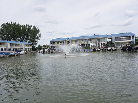 This is a great location on the lagoon and is a LOWER END UNIT. This end unit lends itself to be a great location for entertaining and easy access to unload the car for weekend fun or a permanent residence. Plenty of guest parking. Walk out your from door to your boat slip just steps away and directly in from of the condo. Enjoy the tranquility of the lagoon fountain. This unit has Sunsetter awnings. Enjoy the rest of the summer and fall at beautiful Indian Lake. In the winter there is a ski resort, Mad River Mountain 15 minutes away. Updates include: 18"tile flooring in living room, kitchen, dining room and bathrooms, new refrigerator, Boss water softner, custom window treatments and a new gas grill. This unit has a built in safe in the master bedroom closet. Condo comes with electric boat lift.