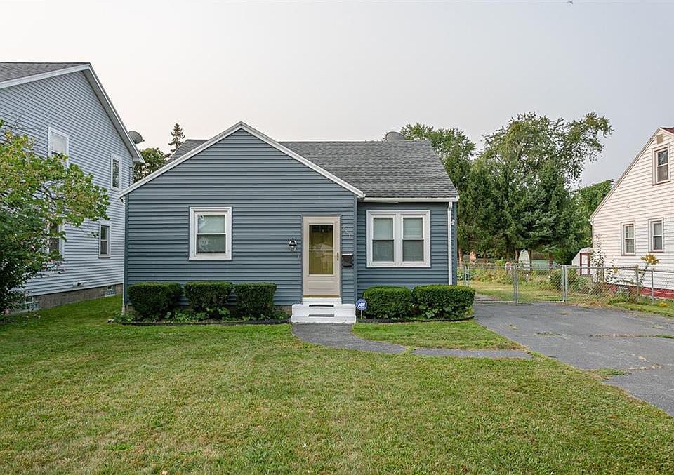 MOVE IN READY IN THE HEART OF GREECE! Close to shopping and expressways, in its central location situated on a large lot with fully fenced yard. Maintenance free vinyl siding and recent roof with architectural shingles. Living room has loads of natural sunlight. Eat in kitchen with oak cabinets and appliances included! 2 bedrooms and 1 full bath downstairs. The entire upstairs is a huge bedroom with large closets. Back deck great for entertaining. Make this house, your HOME today!