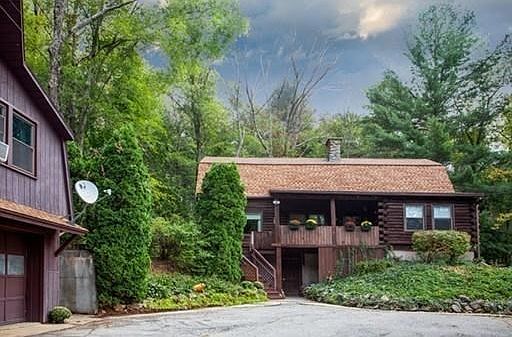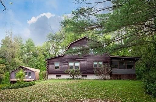 Many Improvements including, 2 New roofs with 30 yr architectural shingles, ALL New vinyl windows,stone fireplace was relined in 1993 and a New furnace(APO). The property is set FAR back from the road, the main house is a LOG home with a ton of character and charm. Wide plank wood floors are in the dining room and exposed beams throughout. There is a First floor bedroom or office, half bathroom with a laundry area. The living room features a stone fireplace for those chilly winter nights. The second floor has 3 bedrooms with a ton of closet space and charm. The large 3 season porch has new berber carpet and tile area, which overlooks the private backyard. Over the detached 2 car garage is the accessory building with new carpet, freshly painted and includes a large living room and bedroom or office. A RARE GEM.