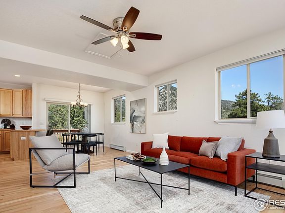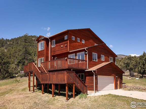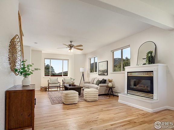 If you've always dreamed of having a "Rocky Mountain" backyard, you have found the right home. This spacious 3-bedroom home backs to thousands of acres of Roosevelt National Forest. Step into the forest and enjoy hiking or mountain biking from your backdoor. The interior is bright and enjoys wonderful views of the surrounding forest. The main floor has two living areas and recently refinished hardwood flooring. Large wraparound decks make outdoor entertaining a breeze. The primary bedroom is the perfect retreat with a gas fireplace and private bath with soaking tub. The lower level offers an office and spacious laundry room. There is a heated, unfinished space ideal for workshop or additional storage room. This home will feel like a good value for the square footage. The neighborhood of Pinewood Springs is a popular, close-in mountain community with well-maintained county roads and easy access to Highway 36. Downtown Lyons shops, restaurants and world-class music festivals are only 10 minutes away. And the grandeur of Rocky Mountain National Park and vibrant Estes Park is only 20 minutes "up the hill." Boulder and Longmont services are only 30 minutes away. No HOA.