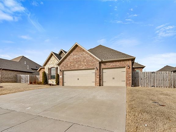 Rare find. 4 bedroom home with a 3 car garage! Incredibly well maintained home in the quiet Bellewood subdivision. As you enter through the oversized solid wood door you are greeted by an open inviting floor plan boasting 10ft/11ft ceilings, beautiful crown molding throughout, shiplap accent hallway wall and ample storage at every turn. This home is an entertainers dream with the covered back patio and full privacy fence; perfect for a family with the split floor plan allowing everyone their own space or as an investment opportunity with the rapid growth surrounding Centerton. The laundry room walking into the primary bedroom is one of the favorite features of this floor plan. Your kitchen has beautiful white cabinets with under cabinet lighting, granite counter tops, subway tile backsplash, gas stove, and a large eat in space. Your kitchen opens up to your living room and the coziest gas fireplace. This is a cant miss opportunity. **Home is back on the market at no fault to the sellers!