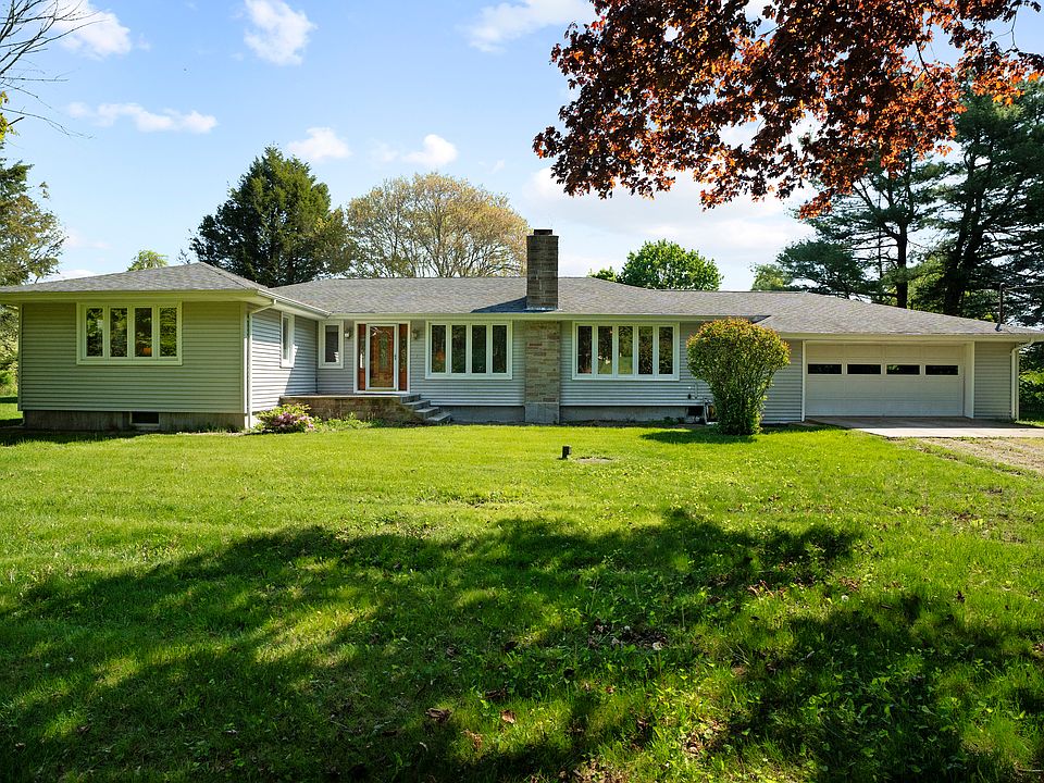 Introducing 241 Clarks Fall Rd.- Welcome to your peaceful escape in the heart of North Stonington! This beautifully maintained ranch blends timeless New England character with modern convenience, all set on a picturesque lot with easy access to I-95. Whether you're looking for a forever home or a serene weekend retreat, this property delivers comfort, style, and functionality in one floor living. Step inside to find a warm and inviting interior featuring a spacious family room with a classic fireplace, perfect for cozy evenings at home. The formal dining room boasts gleaming hardwood floors, ideal for entertaining guests or enjoying intimate dinners. The large, bright kitchen offers a charming breakfast nook, abundant cabinetry and easy-to-clean vinyl flooring-ideal for casual mornings or quick meals. A sliding door off the kitchen leads to the private, level backyard and a covered patio. You'll also find 3 generously sized bedrooms, thoughtfully laid out for comfort and privacy. A new roof was put on in 2014. Additional perks include a convenient two-car attached garage and a private driveway with space for three more vehicles. Surrounded by natural beauty yet close to local amenities, this home offers the best of both worlds. Don't miss your this opportunity to add your personal touches and make 241 Clarks Falls Road your next home - schedule your showing today!