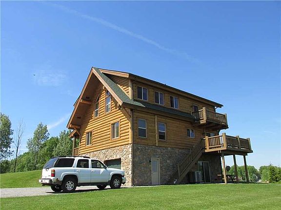 Stunning three bedroom, 2 full bath log home positioned on 3.82 acres of gorgeous countryside with a breathtaking view. This home would be a log cabin lover's dream with a private view yet conveniently located to Moraine State Park, Rt 79 & Rt 422. The spacious open floor plan, two tier deck, two stall garage, large master suite, and den/office/study all compliment this beautiful home. Words alone cannot describe the unique qualities and attention to detail of this property, it is truly a must see!