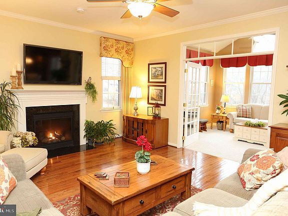 Superbly appointed and meticulously maintained, this stunning carriage home, in a prime location with walk-out basement, is sure to exceed the expectations of the most discerning client. As you arrive, you are greeted by a convenient floor plan that offers graceful transitioning from the dining room, family room, sun room and kitchen. Tastefully painted in soft, complimentary colors, the open floor plan is great for entertaining and family gatherings, yet glass French doors enable a quiet retreat. Loaded with upgrades, this home includes a propane gas fireplace, gleaming hardwood floors, beautiful wainscoting and crown molding. The custom kitchen offers warm tone 42~ maple cabinets, granite counter tops and tile back splash, plus a separate breakfast area and counter with barstools for casual dining. The sunroom adjacent to the Trex deck offers a panoramic view of the secluded back yard, with great views of wildlife. Throughout the house, beautiful windows supply abundant natural light.In addition to the owner~s bedroom suite, with built-ins and abundant closet space, this home was custom built with a second full bathroom on the first floor. The upper level has two spacious guest bedrooms, full bath and large open area, along with walk-in attic space. First floor laundry and holiday lighting package. Hugewalk out basement wired with loads of outlets and roughed in plumbing., Gas grill hook-up and oversized 2 car garage, are some of the other fine features offered by this outstanding property in the premiere community of Indian Valley Greens. Stucco was removed and replaced, at which time windows were re-installed, so all you need to do is move-in and start to enjoy living at its finest!