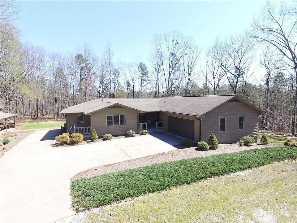 You will love this Private Setting one Level Home with over 10 Acres. Open Floor plan and Split Bedroom Design for Guest Privacy. The home is tucked back into the woods in a beautiful setting. Mature Shade Tress & Level Yard to enjoy outside living. Cedar siding recently stained 3 BR 2 ½ baths with large living area for family gatherings. Rock Fireplace with gas logs. Plus backup heat with wood burning Buck Stove. Dining combination allows plenty of room for guests. Master BR with Master bath suite has walk-in shower and jetted tub. Kitchen has abundance of cabinets and hardwood floors. Small office is located off Kitchen area. Attached oversize 2 car Garage. Detached 20X36 workshop area for all your hobbies. 400' deep well with stainless steel pump. If you love nature and peace & tranquility this is the place!