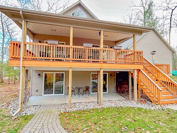 Come check out this updated chalet located in the Clearwater neighborhood only a couple of miles from Higgins Lake. It has 2 bedrooms and 2 baths with additional room for sleeping space in the loft if desired. The kitchen has granite counter tops and stainless steel appliances. The basement is fully finished with a walkout basement leading to a covered porch and pristine back yard. You will also enjoy a large 26x12 covered deck to allow year round comfort. The house also has a 24x24 heated garage with a set of stairs leading to a large loft space above for extra storage space. You also won't have to worry about a power outage with your full house Generac! Don't miss your opportunity to make this gem yours!
