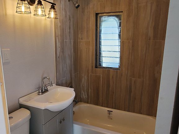 Look no further! This beautiful and completely renovated 2 bed 1 bath with carport home is centrally located. Grocery, hardware, household supplies, restaurants, bars, and the Bayshore Live Oak Park Fishing Pier are all 5 minutes from your new home! This property is move-in ready and impresses as you drive up. The rustic wood slated entryway, shutters, and support beams are your first glimpse of the modern-rustic-farmhouse surprises that await your entry. As you walk in, you are greeted with wood-like whitewash porcelain tile throughout the living room and extends to the dining room, kitchen, and bathroom. Charming, luxury, wood-like espresso laminate flooring in the bedrooms. The open farmhouse kitchen will have everyone gathering around. It is complete with Craftsman Birchwood white shaker cabinets, farmhouse apron sink, epoxied butcher block countertops/bartop, and new stainless steel appliances. The dining area's faux brick accent wall and boxed crate light pulls further compliments the modern rustic living. The completely updated bathroom has tile surrounding the tub from top to bottom. The screened patio is spacious enough for a grill and seating area...a BBQ party awaits! The laundry room is accessible from the carport as well as the storage room that can be easily converted to a she-shed or man cave. All new double-hung windows and hurricane shutters have been installed. The large backyard is ready for your own DYI vegetable garden or pool. Pick up this house before it is too late! This is the one!