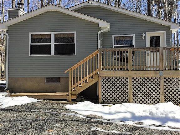 JUST REDUCED TO $74,900 FOR QUICK SUMMER SALE! Chalet-Arrowhead Lake-2 Bedrooms/1 Bath=736 SqFt-Central Sewer. Cathedral Ceilings with open floor plan! Enjoy family meals around the table in spacious Eat-in-Kitchen and then go hang out in the roomy Living Room with plenty of room for the whole family. Owners made upgrades to interior & exterior to this adorable well kept home. Includes New kitchen cabinets,pergo flooring,stylish ceiling fan. New bath vanity,tile,flooring. New LR-windows,knotty pine accent wall,new carpeting. 2 Bedrooms-new carpeting, W/D. Exterior boasts: NEWER ROOF-2006/NEW WINDOWS/NEW VINYL SIDING/GUTTERS/NEW WRAPAROUND DECK/SENSOR LIGHTS. Circular driveway. Shed for Toys. Meticulous move in ready home comes fully furnished. ONLY 2 BLOCKS FROM CHOCTAW POOL!