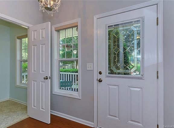 Best location in the neighborhood with wooded rear privacy and a charming front porch overlooking the community park! Bright open floor plan boasts beautiful hardwood floors, updated kitchen with Quartz countertops and stainless steel appliances and fresh paint. Custom French doors open to the cozy patio for outdoor entertaining. Vaulted master bedroom features a tiled bath with garden tub & separate shower and walk-in closet. Stonebrook offers residents a gated community with pool, park and tree lined sidewalks. Unbeatable location minutes to highway access, airport, Light Rail and the new District on Tryon!