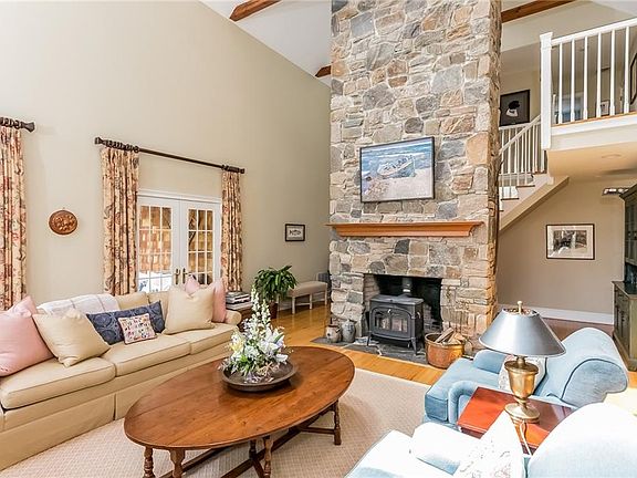 South of Route 1, a mile to town, steps to Westwood Hiking Trails! Stunning, private shingle style contemporary sited high on 2.84 acres with seasonal pond views. Over 3200 sq ft of finely appointed living space brimming with vast expanses of glass, detailed moldings and attention to detail. Breathtaking two-story Great Room with 25 ft beamed ceiling, two story freestanding stone fireplace and walls of glass that bathe the space with light. French doors open to a lovely three season sunroom. The chefs kitchen leaves nothing to be desired with custom cabinets, silestone countertops, Wolfe and Subzero appliances. The extraordinary first floor MBR suite affords a luxurious escape with atrium doors to a pvt covered porch, a sitting room/nursery, and exquisite newly remodeled bath. This versatile plan also includes a first floor office or den with a staircase to the largest of the three bedrooms on the second floor ideally suited as a home office, artist studio or au pair suite. Stone terrace, garden, shed, three car garage, generator. Close to town, shops, restaurants, shore, train. 90 miles NYC, 15 miles Yale.