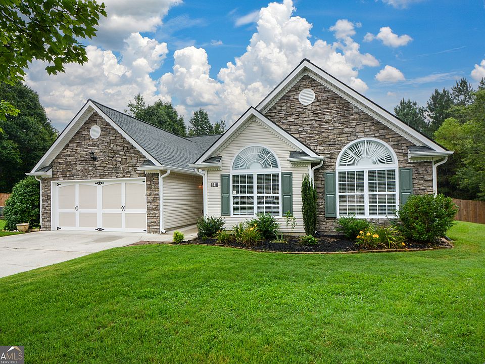 Welcome home to "The Overlook", a desirable neighborhood that offers swimming, tennis, playground and private access to the Silver Comet Trail. This charming step-less ranch home has 3BR, 2 Bath. Master BR has a large sitting room/office/study. Home is located in the back of a cul-de-sac and boasts a covered back porch. In addition, there is a beautiful 20 x 30 carriage house (3 sets of French doors) in a completely private iron rod fenced in the backyard. Great for storage, workshop, recreation room, office and could be modified into an in-law apt. What more could you ask for?? OOPS??? Forgot, one of the largest lots in the neighborhood. Did I mention a fire pit waiting to cook your prime rib whenever you close?