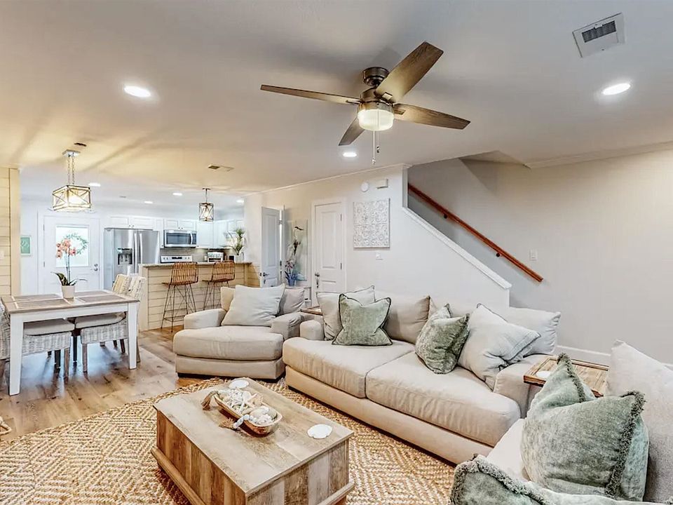 Literally a 5 min walk to some of the most gorgeous beaches on the Emerald Coast. This updated 2 bed, 3 bath townhome is fully furnished and rental ready for all your needs. Updated with beautiful quartz countertops, shiplap throughout, and updated baths. Laundry inside the unit in the kitchen. Relax by the beautiful pool just steps away from the front door or hang out with friends and family on the large back patio.