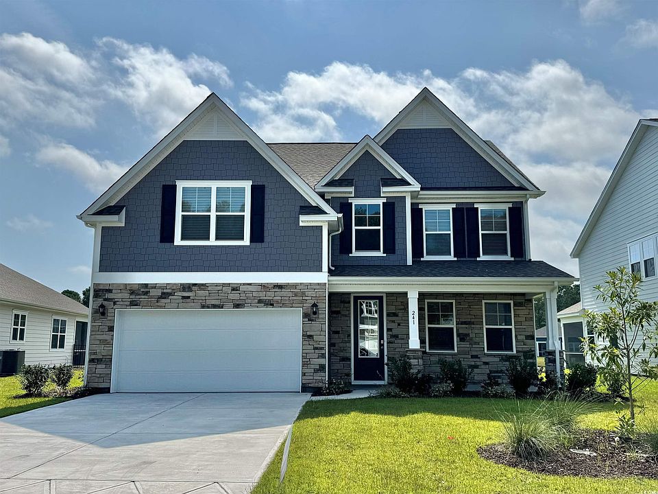 Waterbridge community is in the sought-after Carolina Forest area. Minutes from grocery stores, shopping centers, golf courses, attractions and the beach! The community is filled with resort-style amenities that make it hard to leave home. This gated community features a clubhouse, the “largest residential swimming pool in SC”, fitness center, tennis, pickleball, basketball, volleyball, and bocce ball, a lake and boat launch! The Forrester is one of our most popular floor plans! When you first enter the home there is a gorgeous 2-story foyer with a catwalk overlooking the entry! You will pass by the elegant formal dining room as you head into your great room with an oversized kitchen. The kitchen features one of our largest islands measuring in at nearly 10' long! It also boasts a ton of storage with 36" cabinets. Lastly on the first floor is a bedroom and full bath that is great for guests or can double as an office space. Head upstairs to your master suite with a large walk-in closet and en suite bathroom with tiled shower with separate garden tub and spacious double vanity. Two additional bedrooms with a full bath in between are across the catwalk. One of the best features of this home is the huge bonus room with vaulted ceilings over the garage with closet that can be the 5th bedroom! *Photos are of a similar Forrester home. (Home and community information, including pricing, included features, terms, availability and amenities, are subject to change prior to sale at any time without notice or obligation. Square footages are approximate. Pictures, photographs, colors, features, and sizes are for illustration purposes only and will vary from the homes as built. Equal housing opportunity builder.)