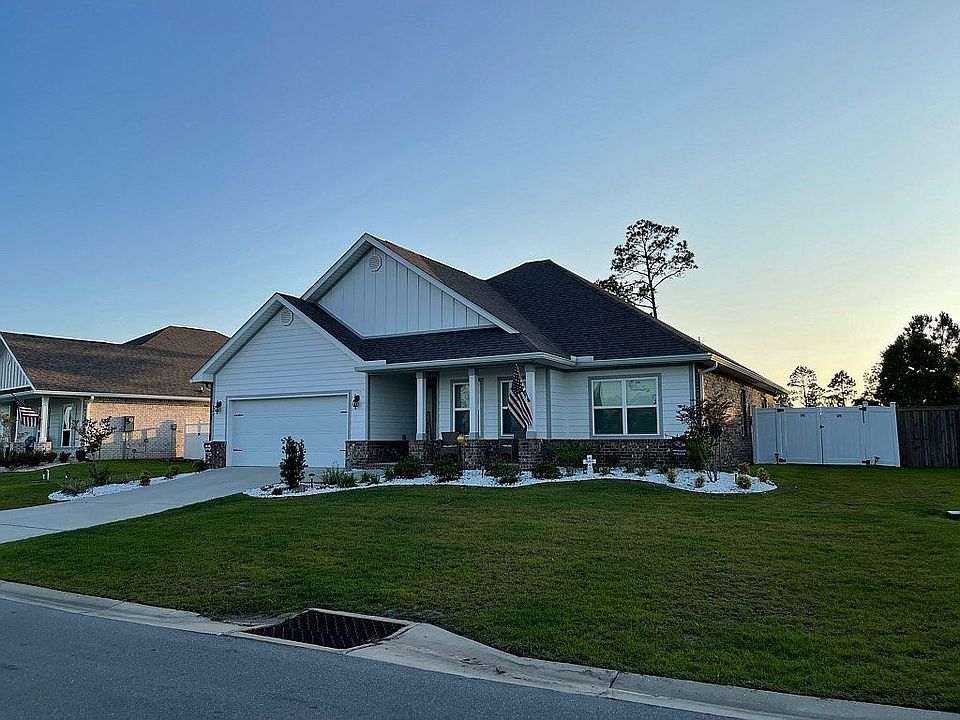 This home has vinyl plank flooring throughout the common areas and plush carpet in each of the bedrooms. The walls are orange peel texture and finished with quality paint, elegant interior doors have brushed nickel hardware and the ceilings are 9' throughout most of the home. The living room and Master suite have trey ceilings. The kitchen opens to the large living room is perfect for entertaining. The appliances include a dishwasher, stove, and microwave. Beautiful cabinetry and a nice sized pantry allow for plenty of storage. The master bedroom has a large walk-in closet and a bath with a dual sink vanity, and separate shower and a large soak tub.Fanning Bayou is a natural and secluded settingsurrounded by conservation habitat yet within proximity to shopping, dining, and the new Panama City International Airport.The neighborhood has a gorgeous pool house complete with a 5,000-SF pool, open and shaded lounge areas, entertainmentpavilion and green. Pictures, photographs, floor plans, elevations, features, colors, and sizes are approximate for illustrationpurposes only and will vary from the homes as built. Home and community information including pricing included features,terms, availability, and amenities are subject to change and prior sale at any time without notice or obligation.