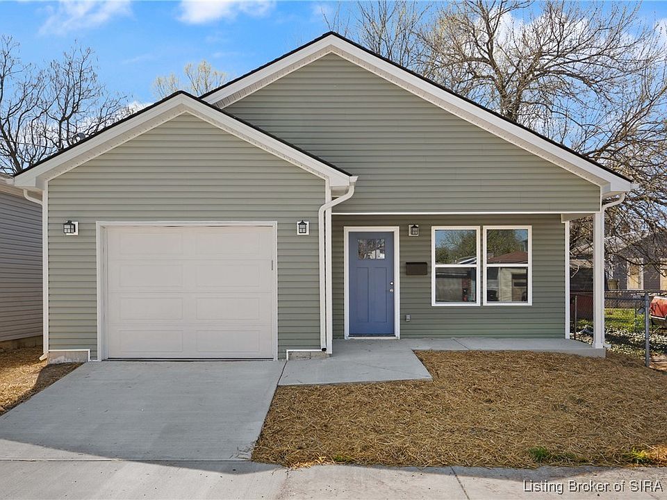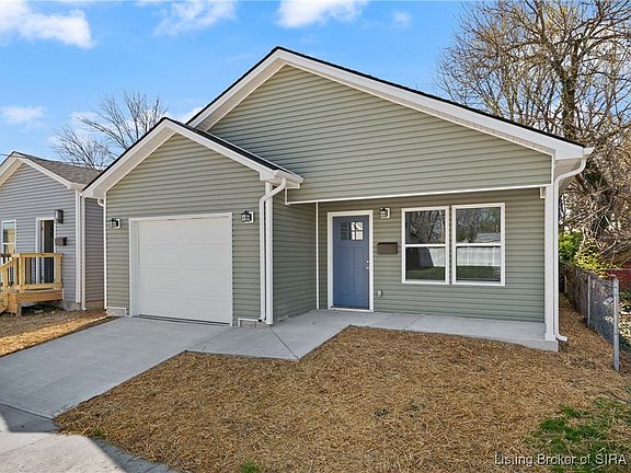 Best deal in Downtown Jeff - STR Ready - Over 1500 sq ft! Here is your opportunity to live just minutes from the Future Jeff Boat Recreational Development. This charming new construction home offers both a covered front porch and rear covered patio. The open floor plan and natural light gives a large airy feel. Primary bedroom is equipped with private en-suite featuring tiled walk-in shower and double sink vanity. Kitchen has stunning white cabinetry, stone backsplash, granite counters and stainless appliances. Home is loaded with modern amenities and luxurious finishes. 1-car attached garage and driveway for off-street parking. Seller is a licensed broker in Indiana and Kentucky. Call today to schedule your showing.