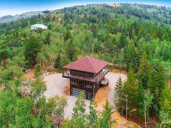 A mountain temple, a panoramic observation house, a quiet retreat, a sublime vacation oasis and contemplative mountaintop residence? The 'Bon Ton' is unlike anything you've ever experienced. The cantilevered deck that wraps around the upper level provides unobstructed views of the Denver metro 4000 ft below, to Mt. Evans, the Continental Divide, then Alps Hill. Below this observation level is its aspen forest sprinkled with pines and wild flowers. The property is unusually flat and very usable which immediately kickstarts the imagination. There exists a startling kitchen island perfect for hosting cooking classes or an intimate evening with guests. The two bedrooms and 2 baths that occupy the middle level have exceptionally high ceilings and exposed structural members. The lower level is a flex space which might function as a gym, yoga studio, den, game room, bunk room, wood workers shop, or storage for cars and ATVs. Out your front door and within minutes walk are horseback riding, miles of ATV trails, hiking, snowshoeing, mountain biking and exploring the historic gold mining relics dotting the mountain as well as historic Russell Gulch. This is 1 of only 5 homes built by Colorado Prospector Homes connected to grid power, however the roof at the Bon Ton is perfect for installing solar panels. The owner is open to negotiating the purchase of the rare and functional furnishings as seen in the pictures. Listing agent is also builder and must be present for all showings.