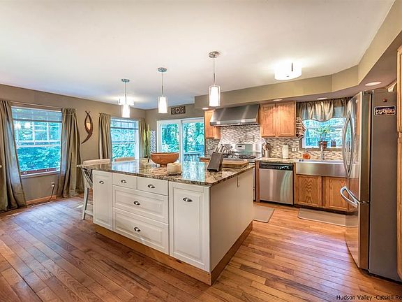 Custom Country Ranch - Nestled away on Grist Mill Road in the hamlet of Tillson, just minutes from Main Street in Rosendale, this charming, fully updated Contemporary Ranch sits well off the road on 1.8 Acres. The Custom Kitchen features gorgeous Granite Counters and Island, Stainless Steel Appliances and is wide open to the Living Room. The large, recently added family room features a high efficiency fireplace that will heat most of the house, French doors leading to a lower deck and 12 foot high ceilings. This One-Story home has a much larger feel than your traditional Ranch. The downstairs bedroom included in square footage, dimensions are 12 x 23 ft. The Owners are perfectly willing to remove the built-in Fish tanks and restore the walls to original condition. The hot tub is negotiable. New roof put on main area of house in January 2019.