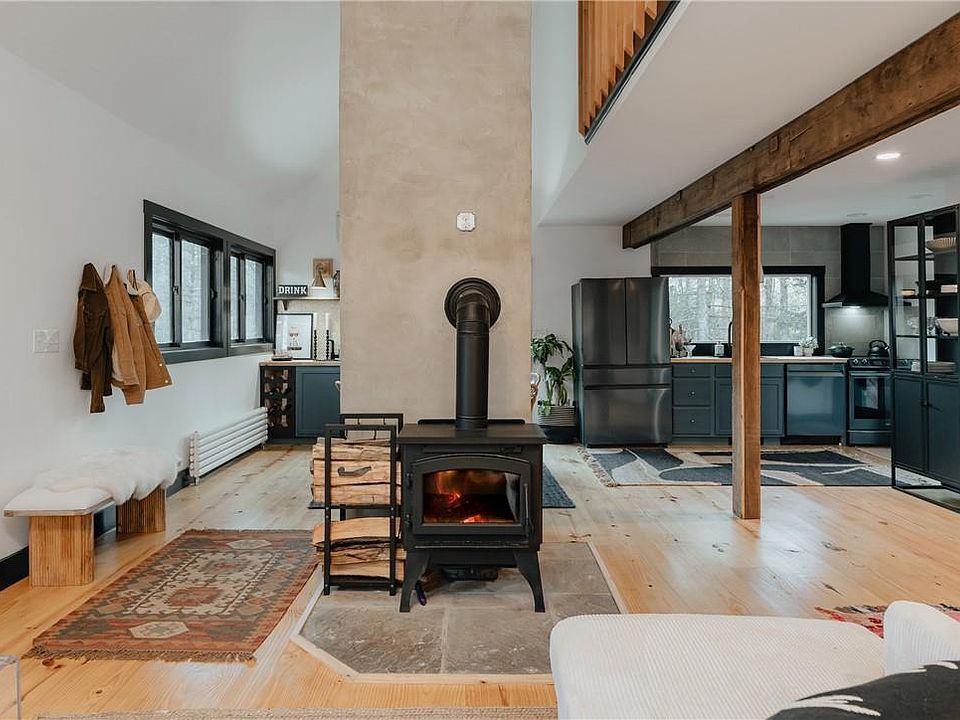 And wait... There's More :) Step into another world in the lower retreat level. A Clearlight Infrared Sauna and Ice Plunge Tub Plus an outdoor shower next to the most amazing boulder unearthed on the property. After your sauna wander down to wade in the stream, sit and meditate. New metal roof, all new upgraded electric, plumbing, furnace, Hudson reed radiators, & mini splits throughout. Make your private appointment today. Furniture Styled By our team and Available Upon Request. Book your private appointment with us today and we can guide you through every detail. 10 minutes to Eldred for shopping, a brewery, outdoor pizzeria. Barryville Farmers market and restaurants on the Delaware river. Additional Information: Amenities:Soaking Tub,Storage,