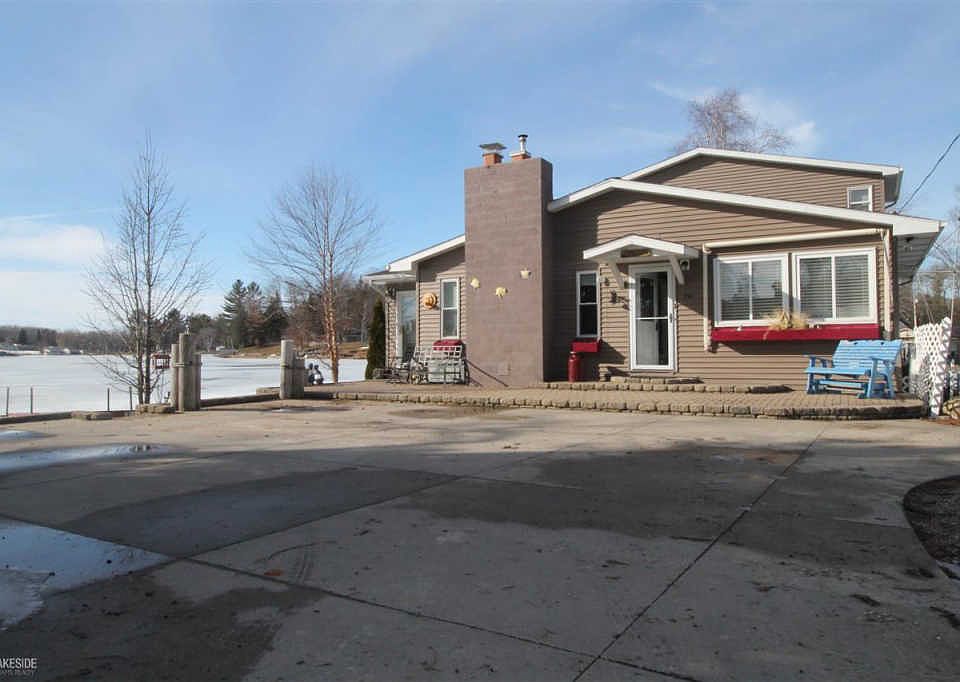 Opportunity to live in paradise in this year-round beautiful 1760 sq ft home. Jimmy Buffet island feel being surrounded by water on 3 sides. Panoramic views of all sports LAKE 13. The Lake is 95 acres, 35 ft deep, with sandy bottom .Home includes 300 ft of lake front /sandy beach & sea wall. This tucked away home has all the amenities: 3 bedrooms, 1.1 baths, large eat in kitchen with newer appliances, great room /stone fireplace with gas insert, sun room, plenty of room to sleep 12. Parking for up to 7 cars. REVERSE OSMOSIS system & vinyl siding .2 docks, 2 sheds , & 2 door walls leading to side fenced in yard & off the sun room.Truly Pure Michigan! Centrally located near Mt. Pleasant: Soaring Eagle Casino, Central Michigan University, golfing, skiing & fishing.A Must see! Move in ready. Your own paradise. Summer is coming.Let's go! BUYERS BE AWARE THIS HOME IS NOT FOR RENT! A scam on Craigslist saying it is.
