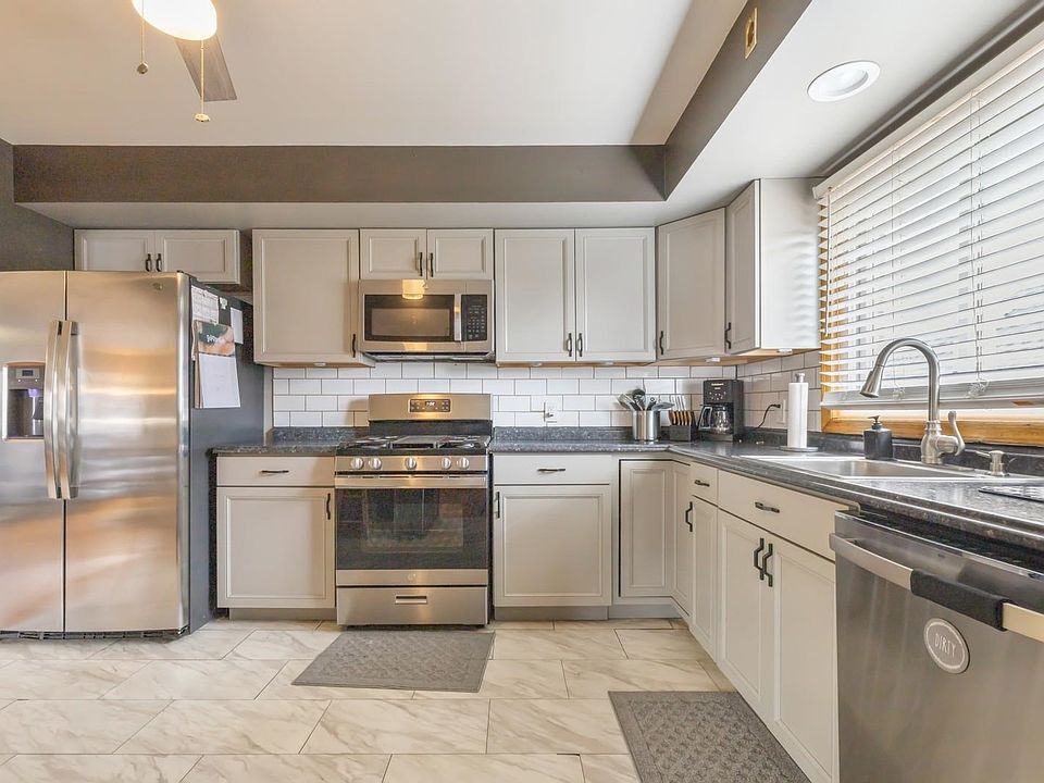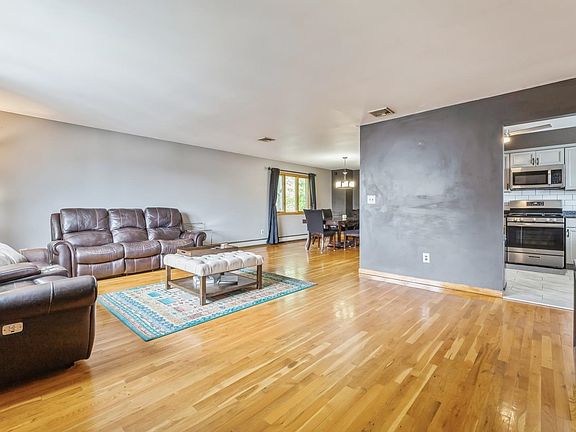 This spacious 3-bedroom unit boasts over 1,800 sq. ft. of comfortable living space. The layout includes a generous living room, a formal dining area, and a newly renovated open kitchen. The unit features in-unit laundry and comes with dedicated parking. Conveniently located near public transportation to NYC, it's just one block from the local school and offers easy access to nearby shopping and dining options. This unit truly has it all!