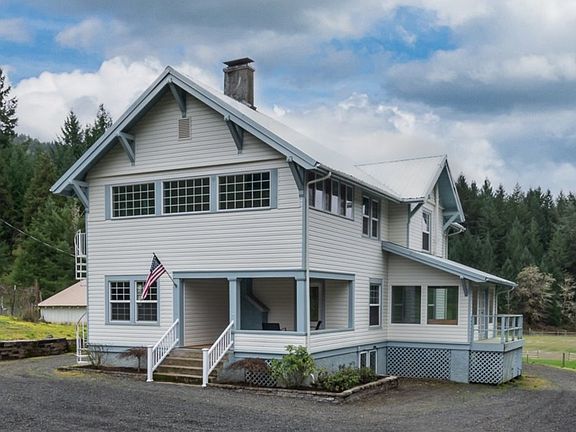 Your 7.15 acre dream home property with a year round creek awaits! This stunning remodeled farmhouse is truly one of a kind, nestled in a peaceful country setting and ready for your horses! The property offers all of the amenities you would want, fully renovated stick built 5 bedrooms 3 1/2 bath home, sunrooms, front porch, 3 car detached garage, 4 bay shop, kids playhouse, outdoor fire pit, garden area, 3 chicken coops, dog kennel with run, fenced and cross fenced, grass pasture paddocks with horse sheds, 30x51 pole barn, 4 stall horse barn with tack room and a covered matted grooming area, 70x80 covered riding arena and 100x220 outdoor arena with all-weather footing. This spectacular farmhouse invites you inside from a traditional covered porch that opens into the cozy family room with original hardwood floors and a wood burning fireplace, and country french doors open up to a separate sun room currently used as an office. Kitchen and dining area are open concept and offer many windows with views of the surrounding trees and outdoor riding arena. The home has kept some historical charm with original wood mouldings, hardwood floors and a cold room serving as a large walk-in pantry. Recent renovations are all new carpet, new kitchen with cherry cabinets, new appliances, granite countertops, and island, spacious laundry with storage, new tile flooring, a half-bath on the main level and downstairs is a partially-finished basement with 1 bedroom with 1 full bath. On upper level, there is a spacious master bedroom, plenty of windows to see the views of the property, an attached master bath with soaking tub, walk-in closet and shower. In addition to the master bedroom, there are 2 bedrooms and a bonus room that as a 3rd bedroom and full bath in hallway. The home is conveniently located 10 minutes from the rural town of Glide and 15 minutes from city of Roseburg. There is Douglas Fast Net HI-SPEED INTERNET available and home is on the Glide School District bus route.