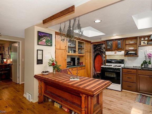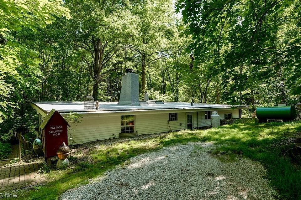 Live the Dream Unique 5 acre wooded property close to the CVNP in Peninsula offers a retreat for nature lovers, homesteaders, and those who just want privacy. A variety of buildings provide for hobbies, vehicles, farming, recreation, and living space. Included are a 36 x25 ft straw-bale insulated outbuilding with a 12 ceiling, a pool barn for storage and a third building with potting shed, chicken coop and attached fenced garden area. Take a dip in the 70 long x 6 deep pond with pier, aerator, skimmer and recirculating lily pond waterfall. There are many custom wood-carved and metal forged features throughout, including a 2-car custom garage with storage above and pulley system to access it. The historic basement house build in 1954 offers opportunity to build up. It features a granite counter in kitchen, renovated bathroom with heated slate tile floor, wet room, claw foot tub, and finnish sauna. French oak wood flooring throughout. Property accommodates may needs: eco-living, ultimate workshop, super home gym, home business, air bnb or gathering space. Whats yours? There are three drives for easy of entry/egress. Sellers have done much to the property. There is still much to do. Incredible potential. Great location. One-off property.