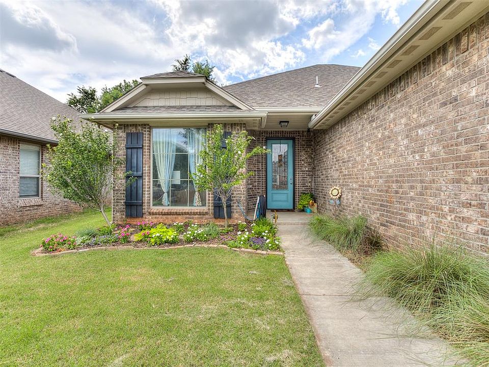 Welcome to a perfect layout with unique designs and functional finishes in Kimberly Crossing. Adorable curb appeal is just the beginning. Upon entry, you’ll enjoy an open floor plan with that makes entertaining in the living area and kitchen seamless. Living room offers a fireplace and a picturesque window with views of the backyard. The kitchen is chef-ready, with a large island perfect for hosting mingling guests. Nice cabinet space and stainless steel appliances. Eat in dining area as well. The primary suite is large and offers 2 sinks, a soaking tub, and walk-in tile shower. Secondary bedrooms are spacious and there is an office off of the entry allowing for flexibility with your family’s needs. Backyard offers a covered porch and a large yard perfect for spending time outdoors this summer. Enjoy the comfortable living that this neighborhood provides. Gated Edmond community with a neighborhood playground. Welcome Home!