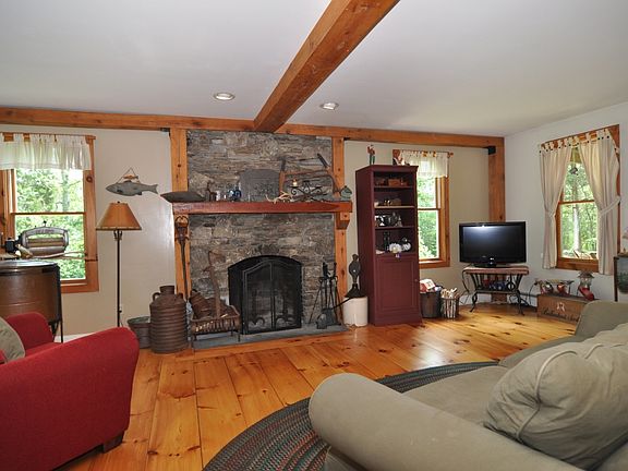 Country cape with gorgeous farmers porch, stone fireplace, wood and tile flooring, eat-in kitchen, master bedroom with en-suite, potential for horses and huge 40x36 barn/workshop.