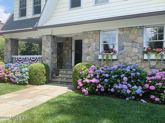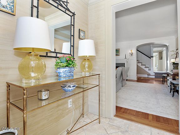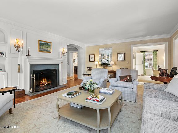 Stunning Dutch Colonial nestled on gated, manicured .36 acre close to town and schools. Striking architectural details including gentle archways, hardwood floors and exquisite millwork enhance the sunny interior. Updated, open floor plan is made for entertaining with a quartzite-clad kitchen, butler's pantry; breakfast room, and family room with gas fireplace, French doors to flagstone patio, fireplace and fenced-in yard. Elegant living room with fireplace, dining room; office and powder room complete the main floor. Private master suite with deck, his/ her walk-in closets, deluxe bath and four bedrooms with two Jack/Jill baths comprise second level. Top floor offers playroom or sixth bedroom with full bath. Charming front porch, port cochere, car port and detached one car garage.