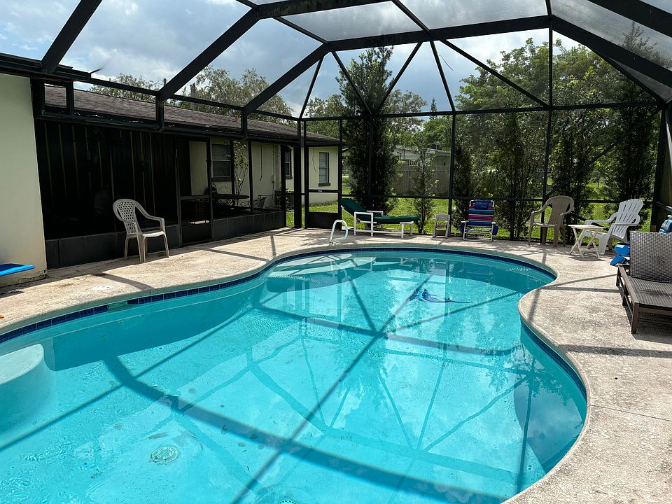 Great duplex at end of cul de sac, with a big yard. Inground swimming pool protected by a birdcage and screened in porch, which is shared with only 1 tenant. 3 bedrooms and 2 large living spaces as well. There is a large fenced in yard as well. Water, trash, and sewer bill is covered by owner, as well as lawn and pool maintenance. Conveniently located near stores, the mall, and not far from I-95. Owner pays for water, and pool and lawn maintenance. Renter pays their own electric bill. First month and security deposit due at lease signing. Last month's rent can be spread out over the lease. No smoking permitted in the unit. Lease is for 12 months. Screened in porch, pool, and yard are all shared property with the other duplex tenant.