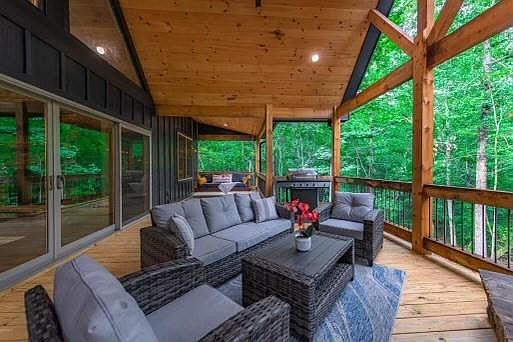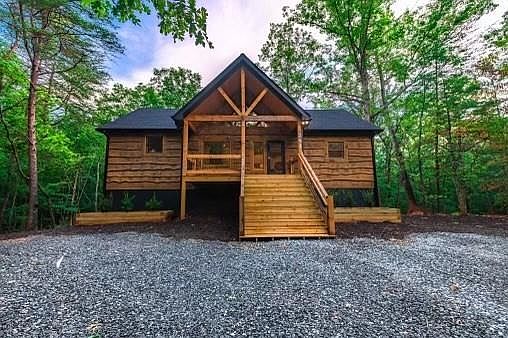 Over $100k in rental income for 2023! Relaxing and serene cabin in the woods, with easy access, spacious interior, and upscale furnishings. Turnkey STR or vacation home, simply walk in and relax! This 2022 built cabin features a large 2.41-acre lot and a spacious 2304 sq ft of living space (plus additional outdoor space!). The main floor features real hardwood floors, an impressive stone gas log fireplace, and easy access to the large back deck with a second stone fireplace. Master on the main with upscale tile bath. The terrace level features another king en suite bedroom, rec room complete with air hockey table, wet bar, wine fridge, and video games. Kids will love the bunk room with custom live edge bunks from Jerry's Mountain Furniture. The terrace level provides access to another patio with hot tub and firepit, the perfect place to relax at the end of a long day exploring Blue Ridge. This cabin is located between the charming towns of Blue Ridge and McCayesville, providing endless options for activities and adventures. Cabin come fully furnished including over $80k in furnishings from Town & Country and Jerry's.