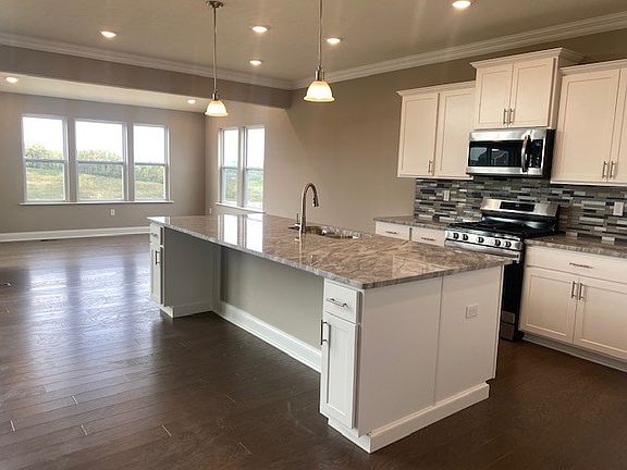 Magnolia Ridge offers privacy and convenience with close proximity to grocery stores, restaurants, and entertainment. Entering this Brick Victorian Craftsman you will see a beautifully put together flex space elegant hardwood floors, LED lighting, and wainscotting. Straight back from the entrance is a gorgeous two story window wall with a two story stone fireplace, great for entertaining being that this space is open to the lovely kitchen. Your Kitchen includes a huge island with upgraded cabinets, granite/quartz countertops, sunroom, backsplash, and a gas range . This home has a 1st floor bedroom with bathroom perfect for overnight guest. The owners suite opens with double doors into a gorgeous platinum bathroom with soak tub, ceramic splash around tub, glass enclosure, one rain can, and adjustable spray bar. One of the last two inventory homes available in Magnolia Ridge. "ONLY" Truman G available for Quick Move-In!!! !