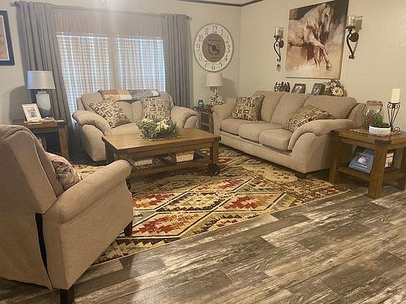 This gorgeous mini farm is ready for a new family. This 2021 manufactured home is gorgeous with big master suite featuring soaking tub and walk in shower. There is also open floor concept for dining, living room, and kitchen. Home also has an additional small den/sitting area. Big porches on front & back are great spot to enjoy privacy. The 12 acres are fenced(need repair) and there is a pond & barn on the property. Barn is 2500 sq ft and has 5 stables. Barn also has electric, septic, & water.