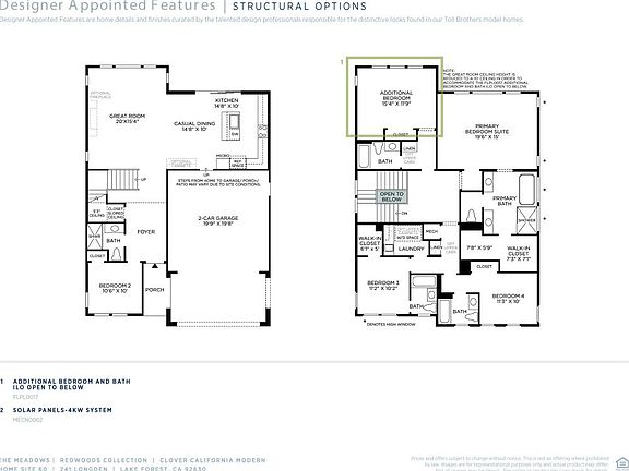 NEW CONSTRUCTION. This is your chance to own a beautiful Toll Brothers home within the Redwoods at the Meadows community. The Clover California Modern flloorplan features porch and spacious foyer flow into the two story great room with our signature floating staircase with glass panels. The well-appointed kitchen is enhanced by a large center island with breakfast bar, plenty of counter and cabinet space, and roomy pantry. First floor features a sizable bedroom suite with closet and shared hall bath adds desirable flex space. The elegant primary bedroom suite is located on the second floor, complete with an expansive walk-in closet and deluxe primary bath with dual vanities, large soaking tub, luxe shower, and private water closet. Secondary bedrooms feature ample closets and private baths. Home includes curated designer options and Sunpower solar panels. Buyers will be able to choose their interior finishes (i.e. cabinet, countertops, backsplash, and flooring). Estimated completion time frame is approx. Jul/Aug 2023. Amenity-rich luxury master plan community centrally located in Lake Forest - Resort-style recreation center with private clubhouse, two pools, two spas, cabanas, lounge with fireplace, and outdoor BBQs. No Mello Roos. Close to shopping centers, Lake Forest Sport Park, and easy access to 241 freeway.