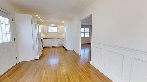 Very nice apartment in residential neighborhood. Close to Moody Street with all its restaurants, shops and amenities this property has a "Walk Score" of 70. There are nearby parks and numerous buses and train service within 1 mile or less. This is a spacious unit with 4 full size rooms, central A/C, fully applianced kitchen with microwave and gas cooking, hardwood floors throughout and modern kitchen and bath. Utilities included in rent are heat, water, electric and gas.