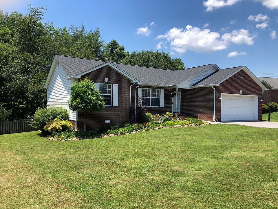 Come see this beautiful 3 bedroom, 2 bath split bedroom floor plan. A great room with cathedral ceilings and a fireplace, custom built mantle and floating shelves. A sunroom/ office was added on with french doors off the kitchen. 2 car garage. The back yard is fenced with a creek and large trees past the fence. Close to public and private schools. Buyer to verify square footage.