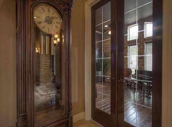 Hill Country 1.5 Story Home. Formal dining with tray ceiling ornamental iron artwork and wood floor. Triangular island kitchen with granite counter, tiled backsplash and floor, under/over cabinet lighting, over range pasta faucet, and walk-in pantry. Corner gas fireplace in family room with 20' vaulted ceiling . Master bath with separate vanities, separate shower and jacuzzi tub. Upstairs game room with wet bar, mini-fridge office loft, bedroom, and full bath. Study with built-in desk/armoire. Covered patio
