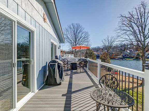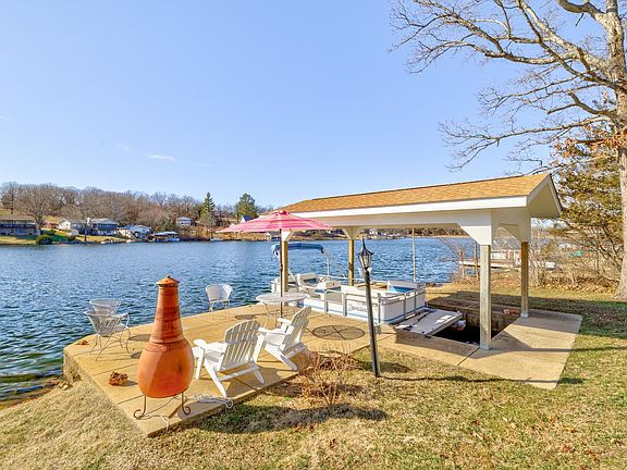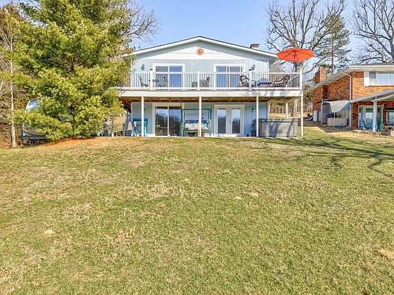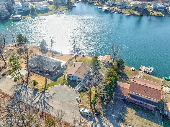 Gorgeous 3 bedroom, 2 bath LAKEFRONT home! The VIEWS will make your day! This beautiful home has 1818 square feet of living space for a full time resident or weekend retreat! You will love the open floor plan of the main level! The living room has a vent less gas fireplace for the cool evenings. Catch a view of the lake at anytime thru the UV protected sliding glass doors. The adjoining dining area and kitchen gives the perfect flow. The main level master is also a plus. The lower level has a large family room, 2 bedrooms and bath giving family & friends their own space. Upgrades to the home include, retaining wall, composite decking, lots of concrete outside, windows, beautiful hickory flooring and more. If you live on the lake the backyard is your haven! This property has a great slope to the lake and per the seller the water is deep and beautiful! Enjoy relaxing or grilling on the patio and a covered boat slip is a few steps away! The home comes with a storage shed for lake toys!